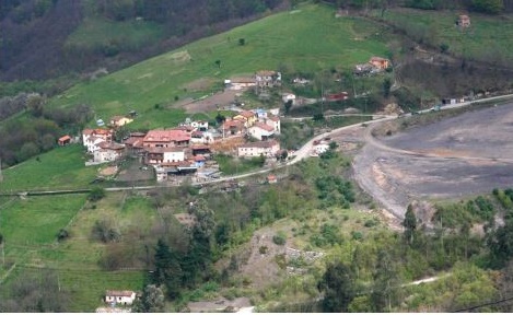 Pueblo de Pampiedra, con la escombrera a la derecha